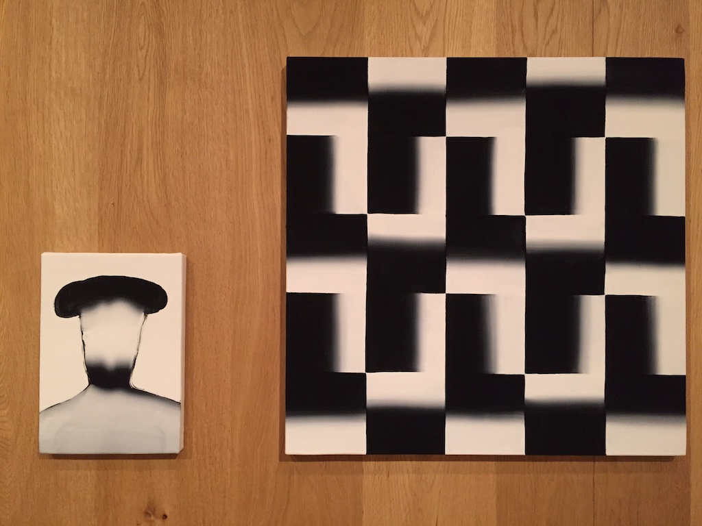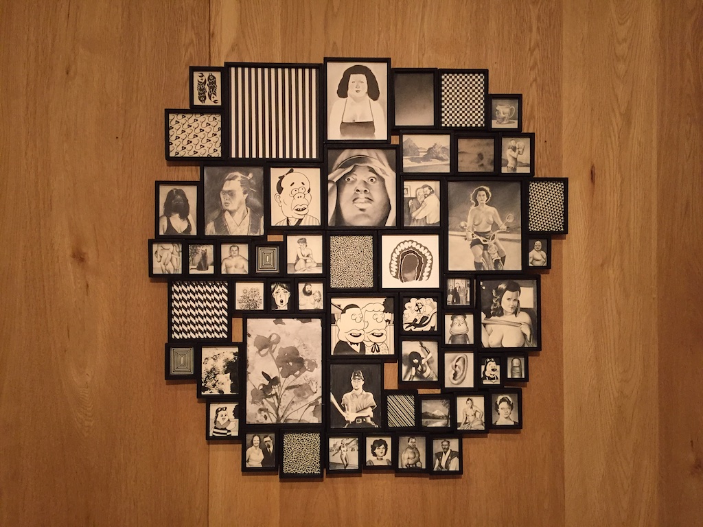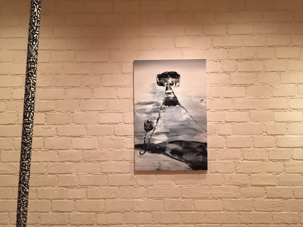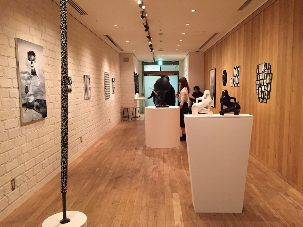 もちろん、ペイント等はかなりの高額なのですが、ソフビのフィギュアとか、テイトウワさんのジャケットにスプレーをかけたような作品なんかは結構手軽な値段で売られていたりして、物欲を刺激されてしまいました。結構自由に色々なものを作品にしているという印象をうけましたが、やはり全体的にモノクロでありそしていろいろ作って入るけれどもペインターであるということを印象付けられる展示でした。