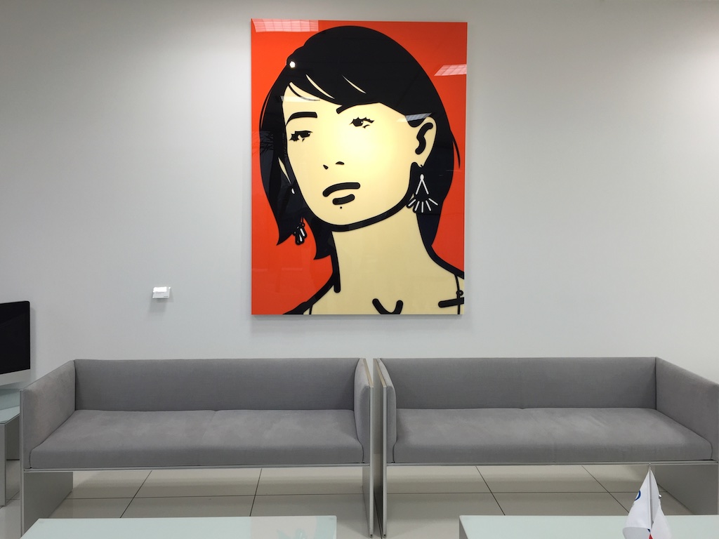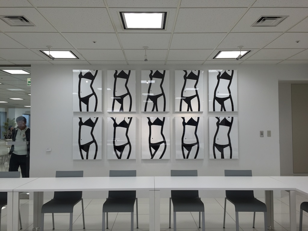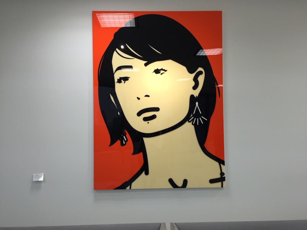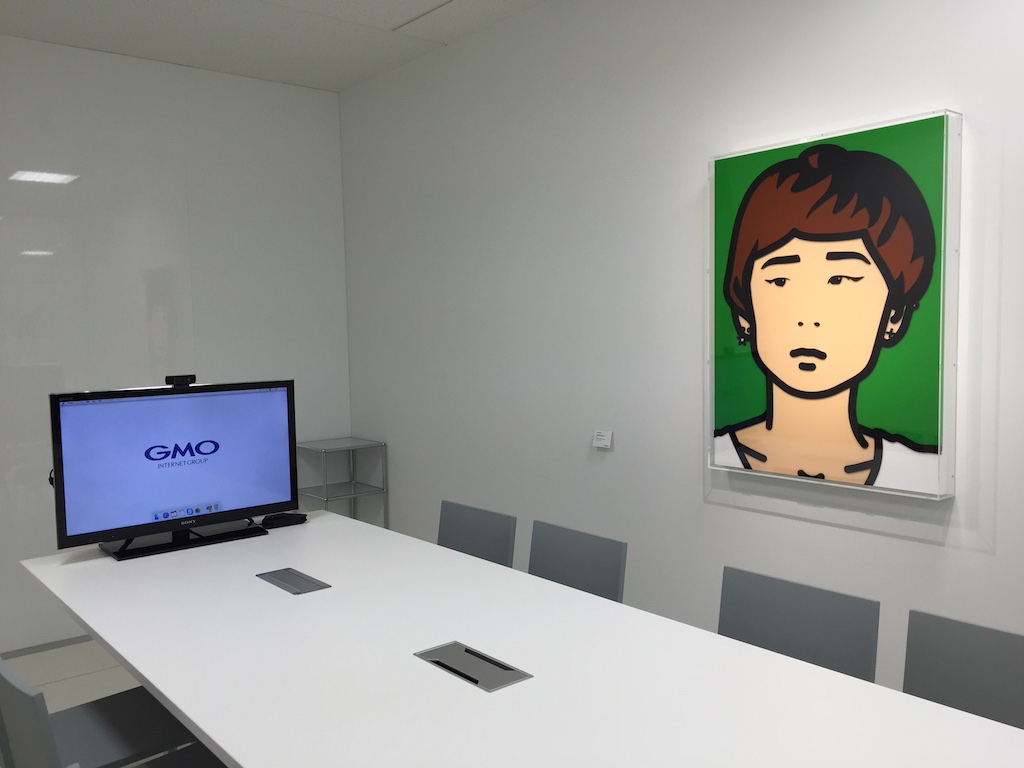GMOのオフィス内にはジュリアンオピーの作品がいくつも飾られていて(GMOがやるネット事業とジュリアンオピーの作品は共通性が多い的な説明があったが、なんとなく信じられないので割愛)、オフィスのロビーや会議室など至る所に作品がありました。
