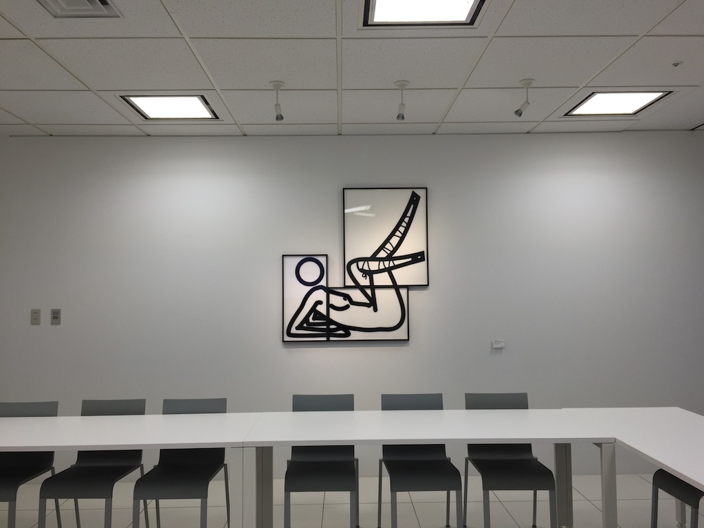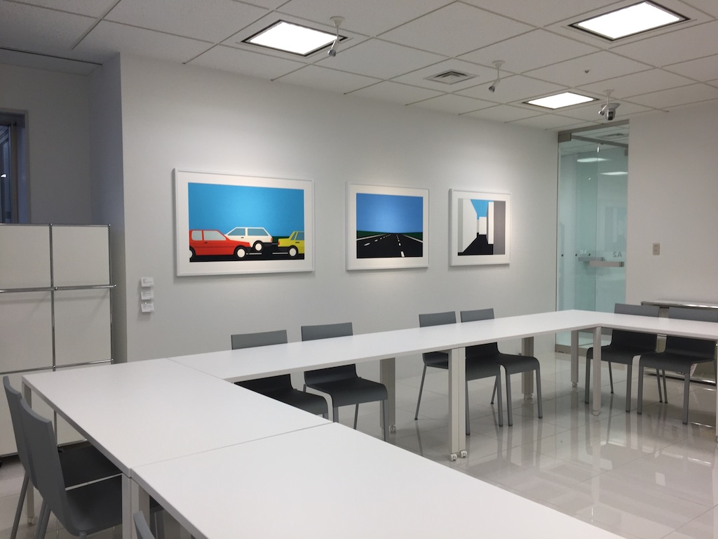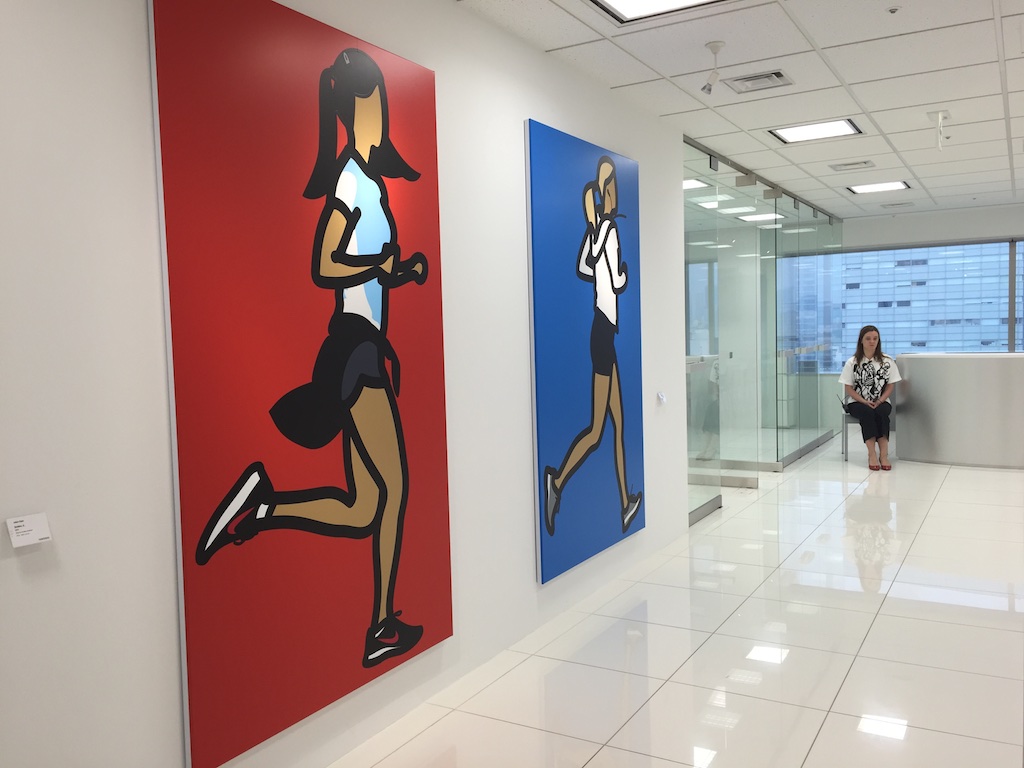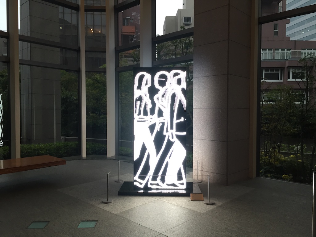 GMOのオフィス内にはジュリアンオピーの作品がいくつも飾られていて(GMOがやるネット事業とジュリアンオピーの作品は共通性が多い的な説明があったが、なんとなく信じられないので割愛)、オフィスのロビーや会議室など至る所に作品がありました。