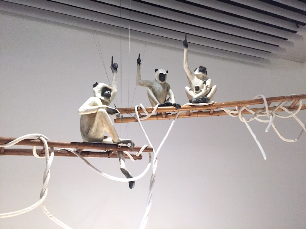 森美術館でインドのアーティストというのを何人か見ていると思うのですが、共通して、いろいろな人種がでてきたり政治的な動きをしているという印象があって、これは森美術館が選んでいるからこうなるのか、インド人のアーティストがそういう方向なのか、わからないですが、N・S・ハルシャも真面目なアーティストで、いろいろな人種や政治的なことがらをモチーフにしている印象でした。