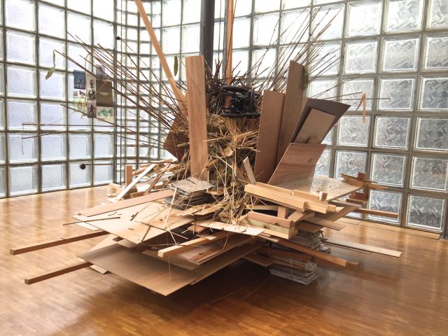 東京を表現しているというか、東京から得られたインスピレーションという形で作られているようですが、メタボリズムとかイサムノグチとか北斎とか今の東京ではないかなぁという感じもしつつ、まあメタボリズムと言われれば最初にみた新聞紙の構造体はメダボリズムっぽいといえばぽいが、きっと会期も後半になると蔦が絡まって緑になりそうな予感だけしました。このごちゃごちゃのいろいろなメディウムが混ざっているのが東京なのだろうか。