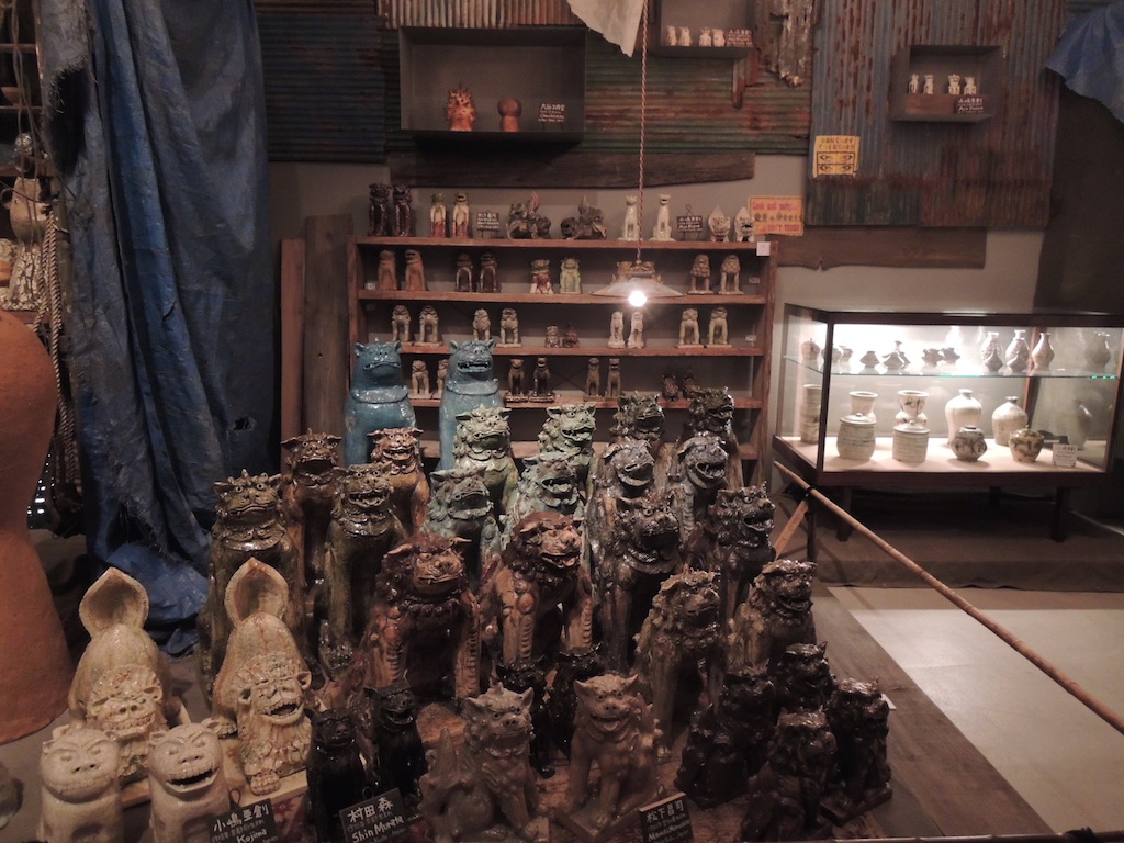 大谷工作室さんの巨大な作品から、奈良美智さんのような現代アートから来ている陶芸や、桑田卓郎さんのような陶芸の新たな一歩を進んでいるようなもの、また逆に普通の皿や壺のようなものまで所狭しと並べられていて、村上さんの話に出てくる作品を直に観るような機会になりました。