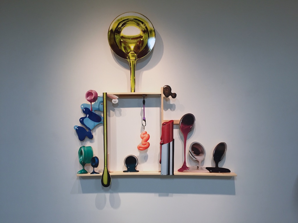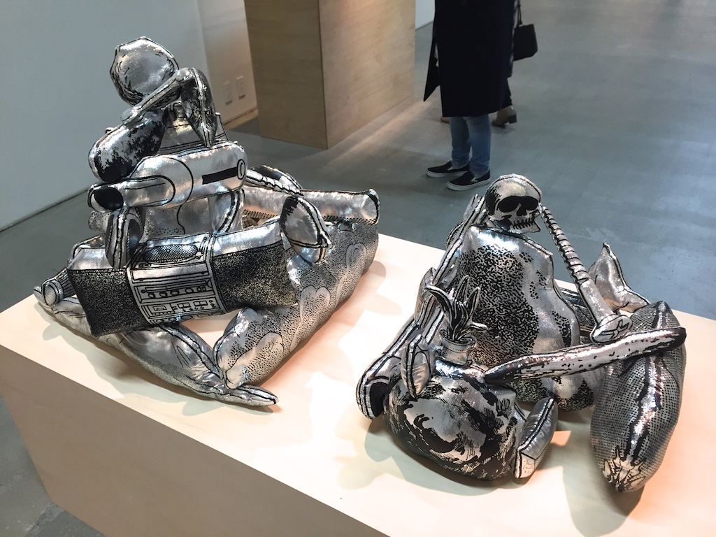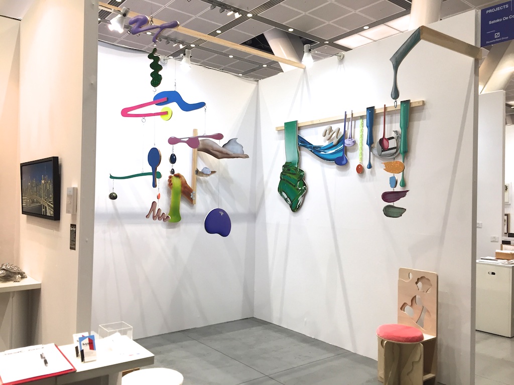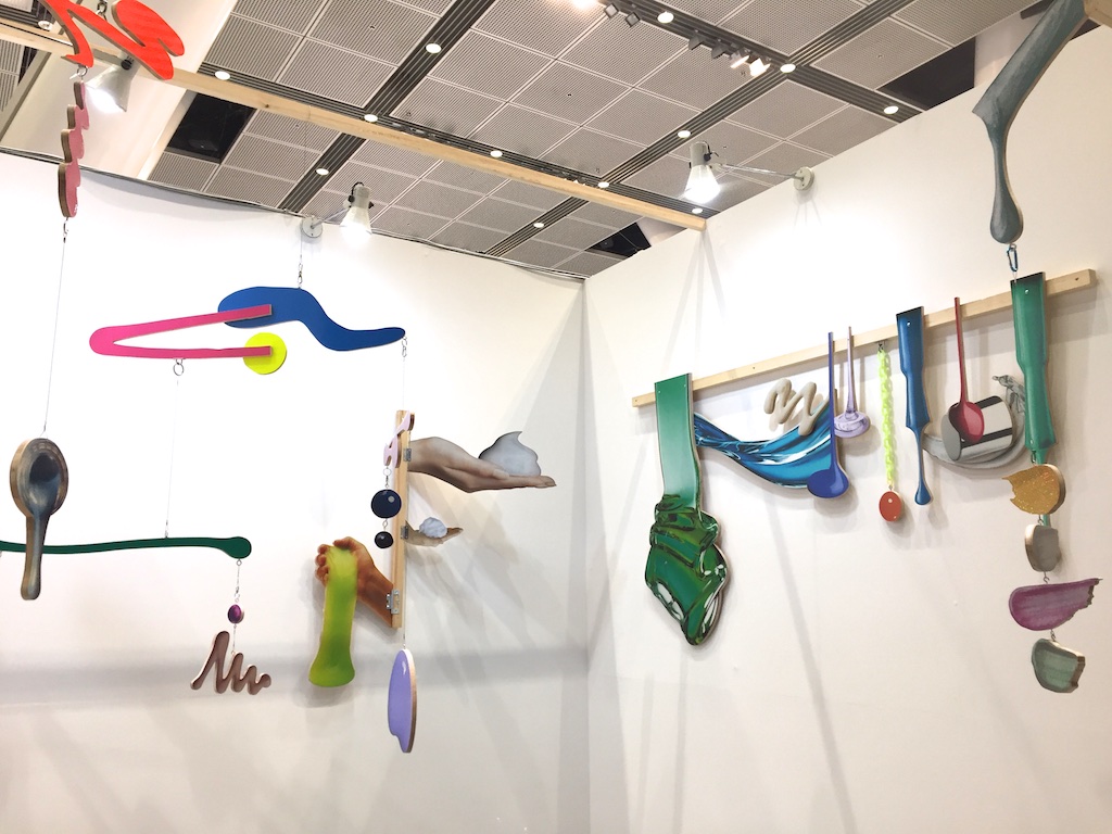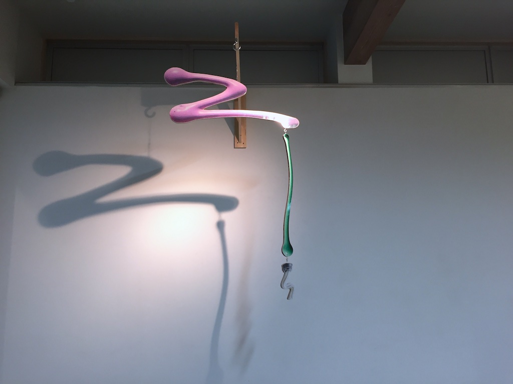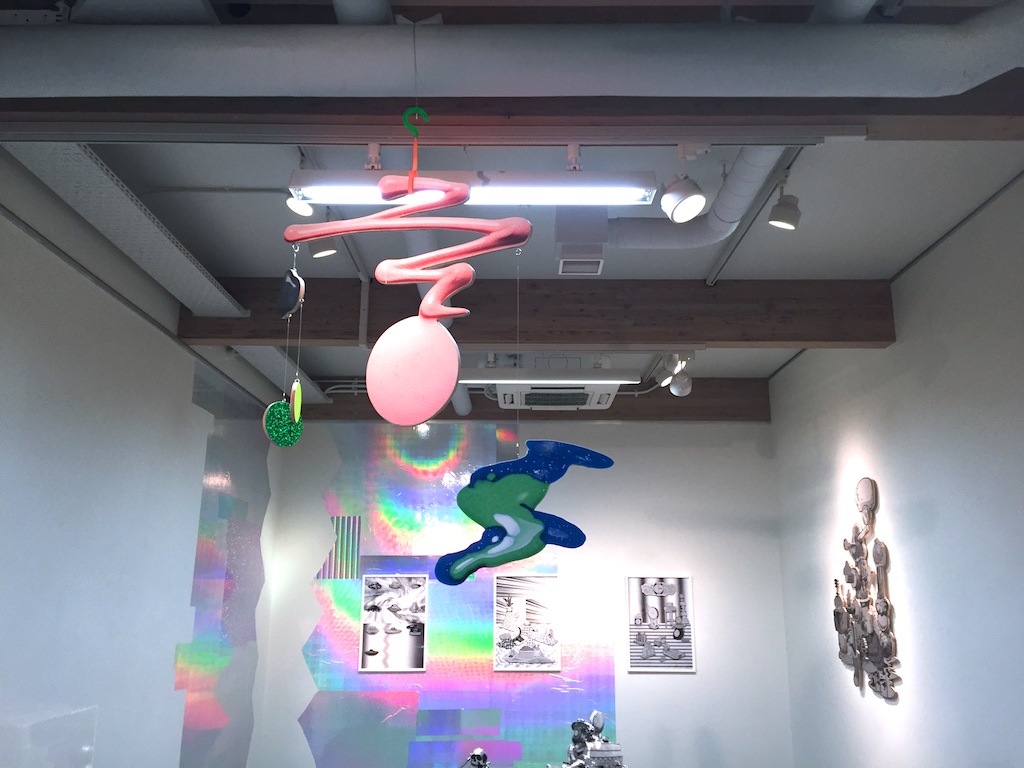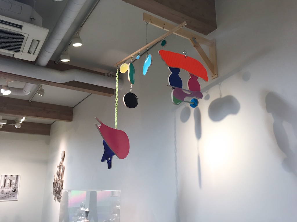 最近よく見るようになったモビール的な作品とリキッドを切り取った大きな立体作品、漫画のようなものを重ねた作品や、時々見るソフトスカルプチャー的な作品とあまり見たことがない石や地味な色のものを重ねた彫刻というような様々なものがある展示でしたが、いつも通り作品としては何かと何かを出会わせて掛け合わせることで新たな形や作品を産んでいるようなものたちでした。
