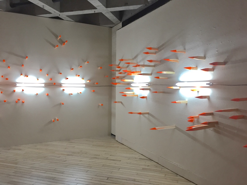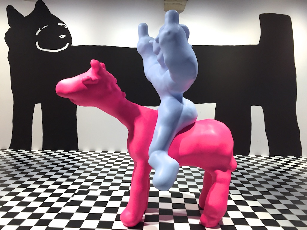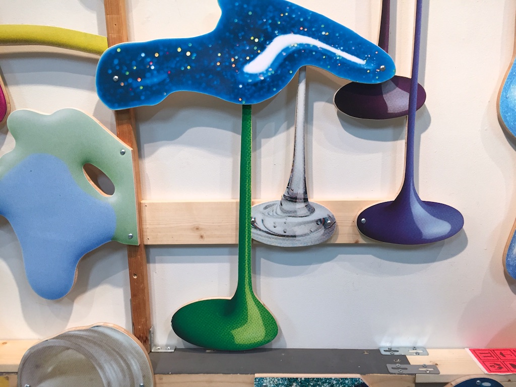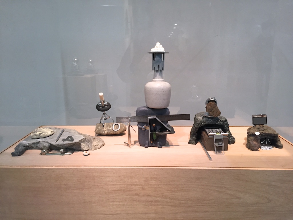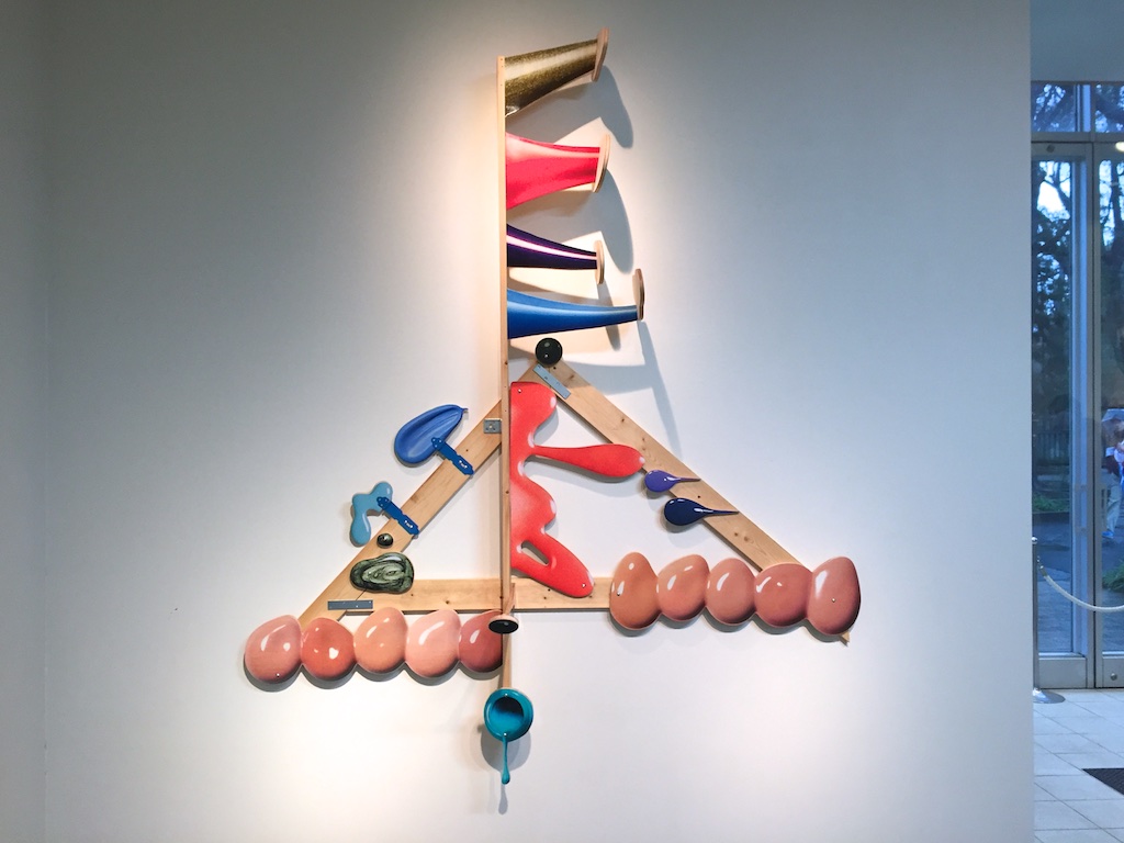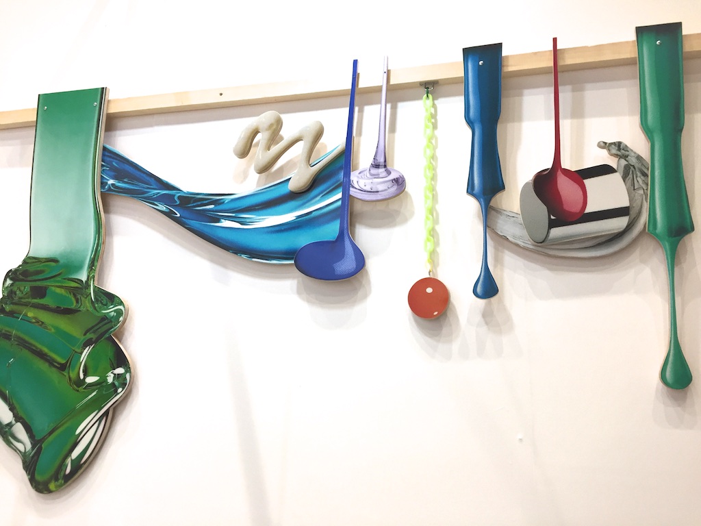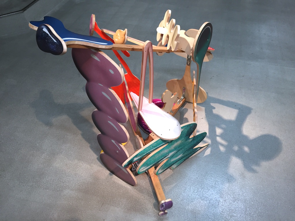 最近よく見るようになったモビール的な作品とリキッドを切り取った大きな立体作品、漫画のようなものを重ねた作品や、時々見るソフトスカルプチャー的な作品とあまり見たことがない石や地味な色のものを重ねた彫刻というような様々なものがある展示でしたが、いつも通り作品としては何かと何かを出会わせて掛け合わせることで新たな形や作品を産んでいるようなものたちでした。