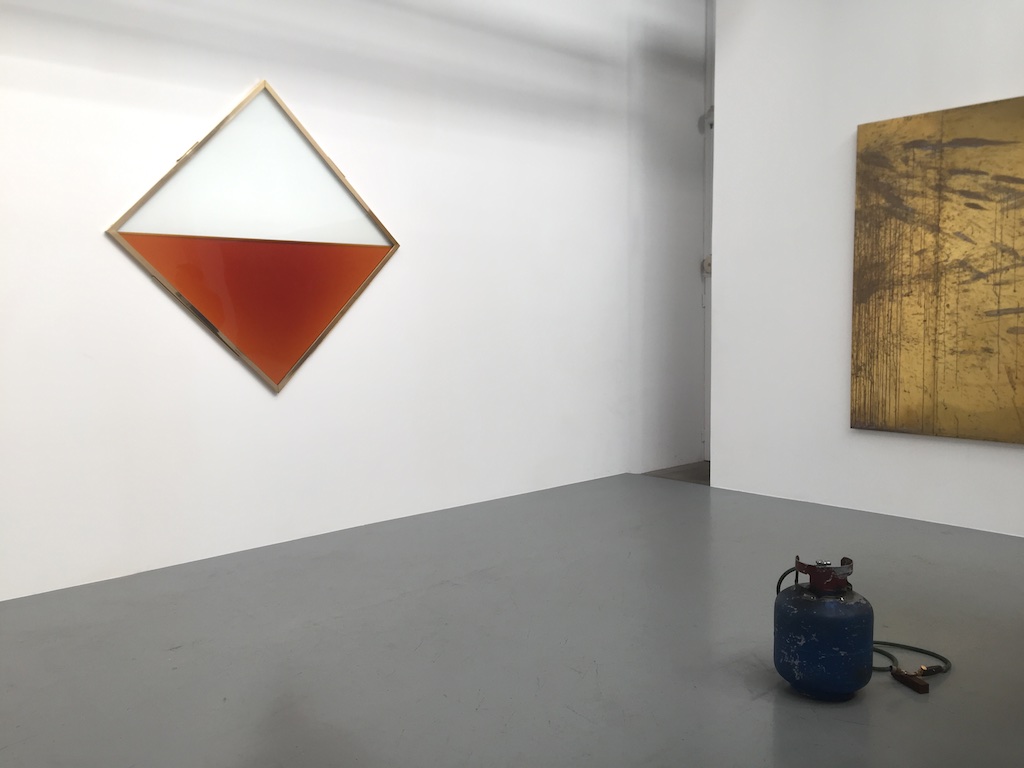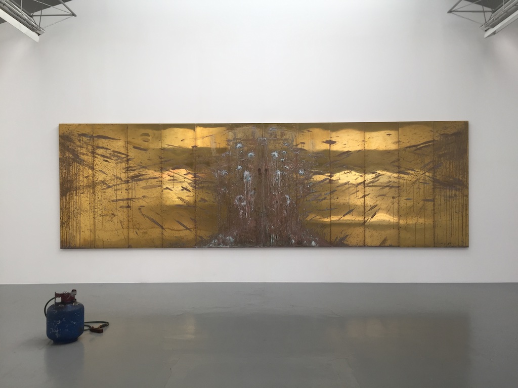 2人の作家の展示だったのですが、日本人とイスラエル人の作家でどちらもベルリンで活動をされている方々の作品だそうです。最初に目に付いたのはやはり真鍮の大きな腐食している作品でそれ自体の腐食が進行していくことで作品が変容していくのだなーなるほどなー。