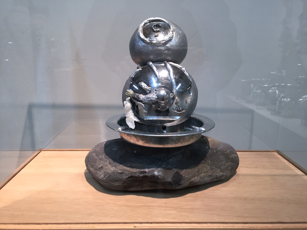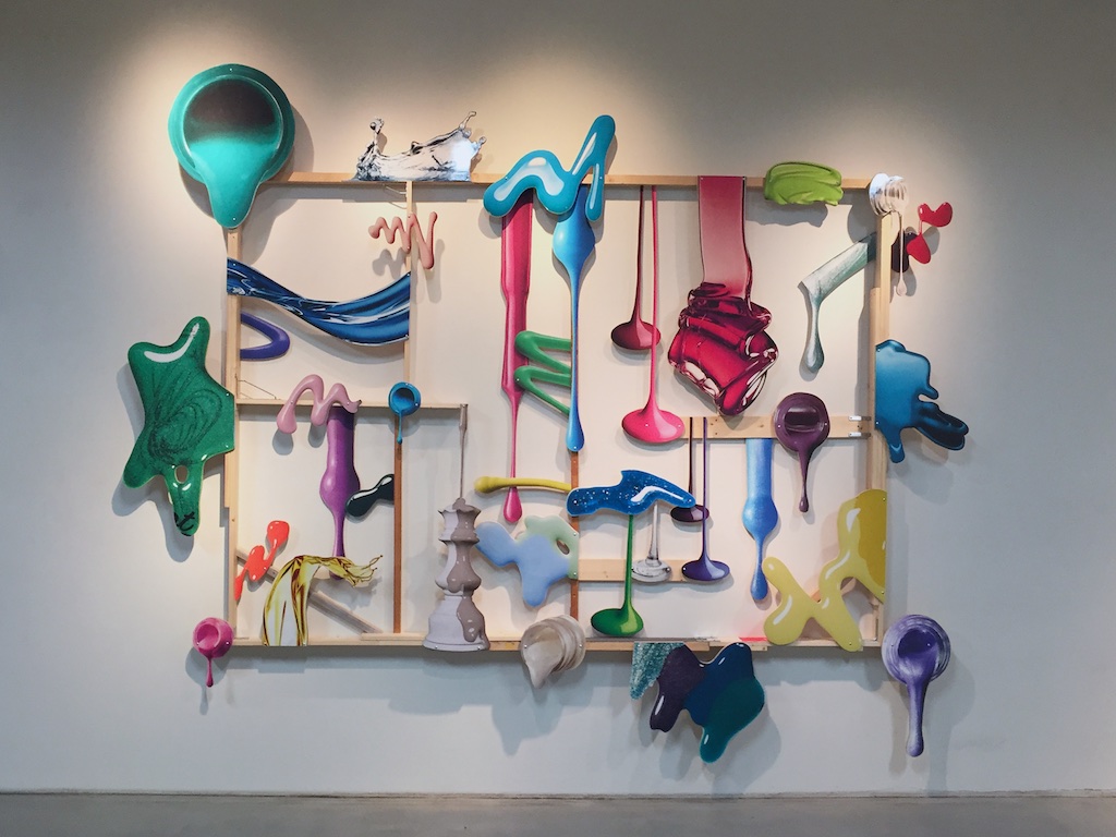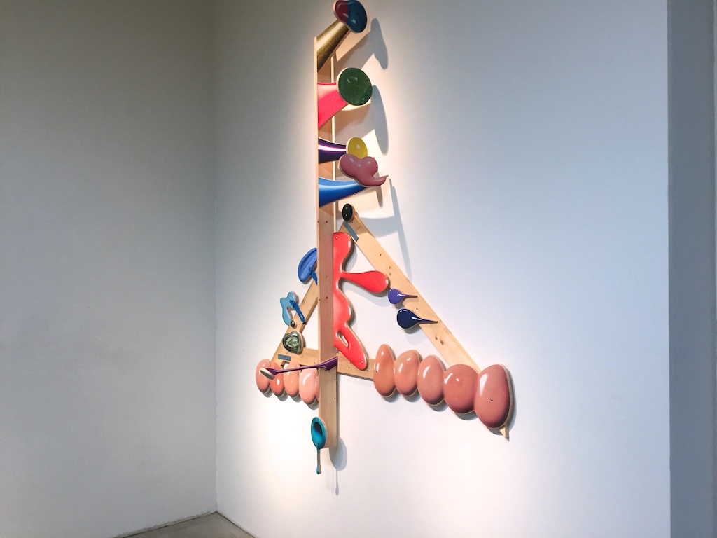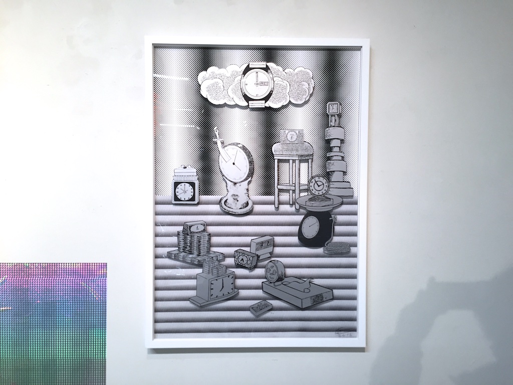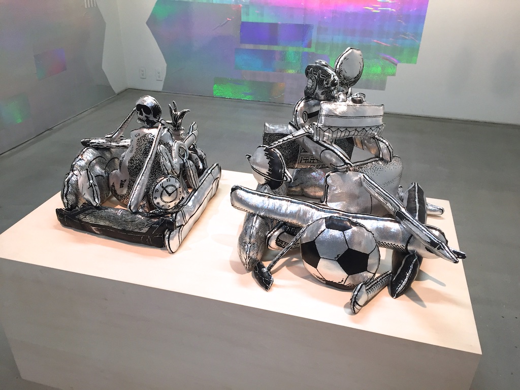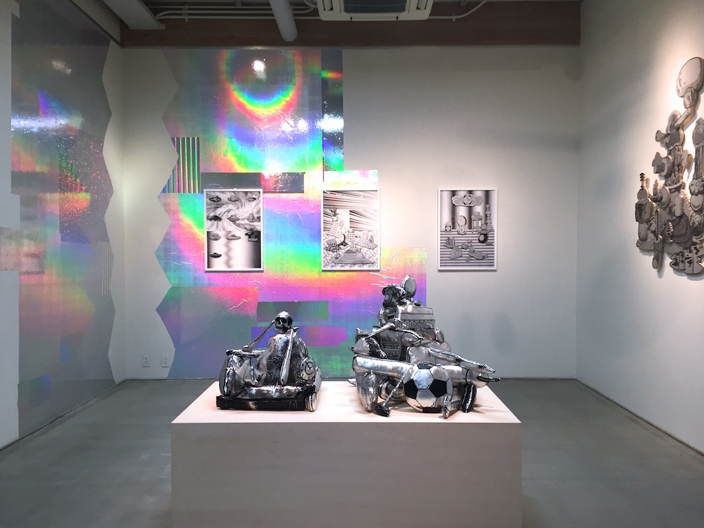 最近よく見るようになったモビール的な作品とリキッドを切り取った大きな立体作品、漫画のようなものを重ねた作品や、時々見るソフトスカルプチャー的な作品とあまり見たことがない石や地味な色のものを重ねた彫刻というような様々なものがある展示でしたが、いつも通り作品としては何かと何かを出会わせて掛け合わせることで新たな形や作品を産んでいるようなものたちでした。